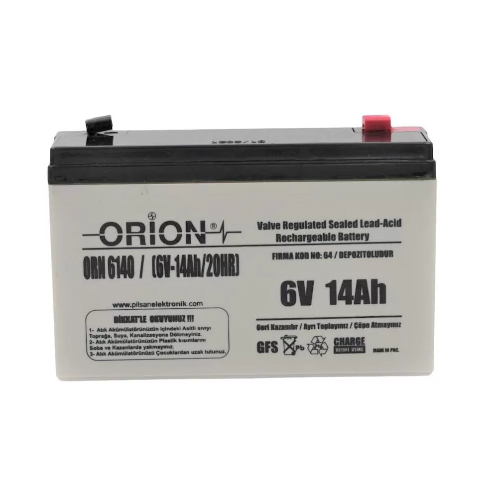 Orion 6V 14Ah Bakımsız Kuru Akü, ağır hizmet tipi cihazlarda kesintisiz güç sunar. Endüstriyel uygulamalar, UPS sistemleri ve jeneratörlerde tercih edilir. Güçlü, sızdırmaz ve çevreci yapısıyla uzun vadeli çözüm sunar.