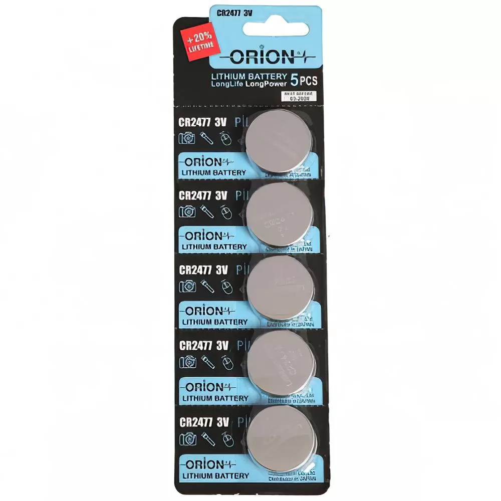 Orion CR2477 3V Lityum Pil 5’li Paket, yüksek kapasiteli ve uzun raf ömrü sunan bir enerji kaynağıdır. Tartı, RFID cihazları ve sayaçlar için uygundur. Sabit voltaj çıkışı ve geniş sıcaklık toleransına sahiptir.